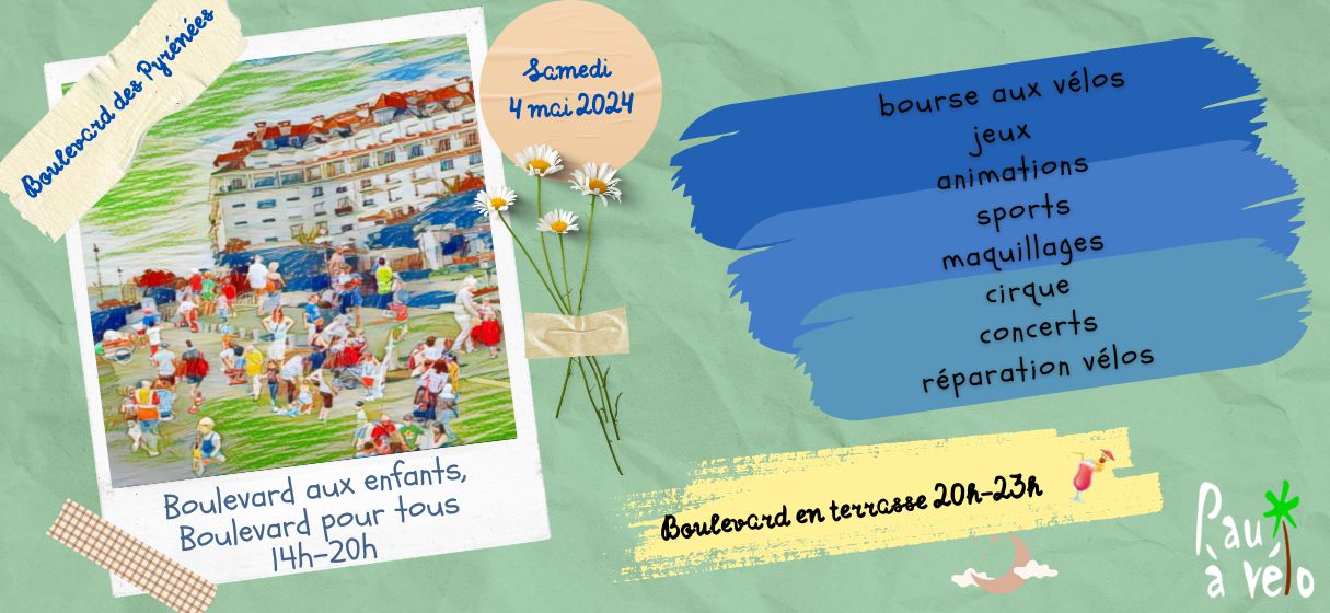 Ce changement de visage de l’espace public, nous espérons vous donner envie de le voir perdurer ! L’association Pau à Vélo propose depuis de nombreuses années la piétonisation du Boulevard des Pyrénées, promenade emblématique de la ville, avec ses nombreux cafés et terrasses. Quoi de plus souhaitable que d’en profiter à l’abri de la circulation motorisée, dans un espace public adapté à la marche et à la flânerie ?
