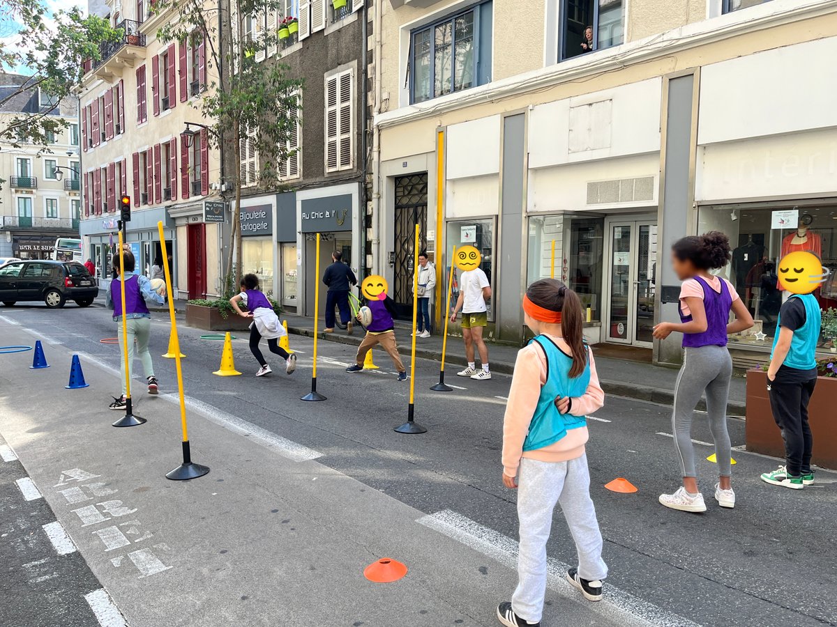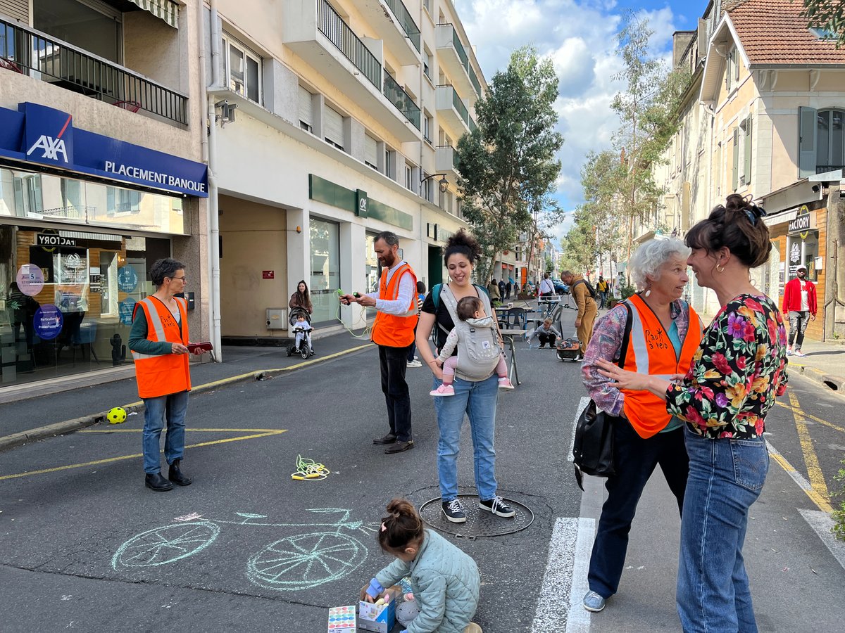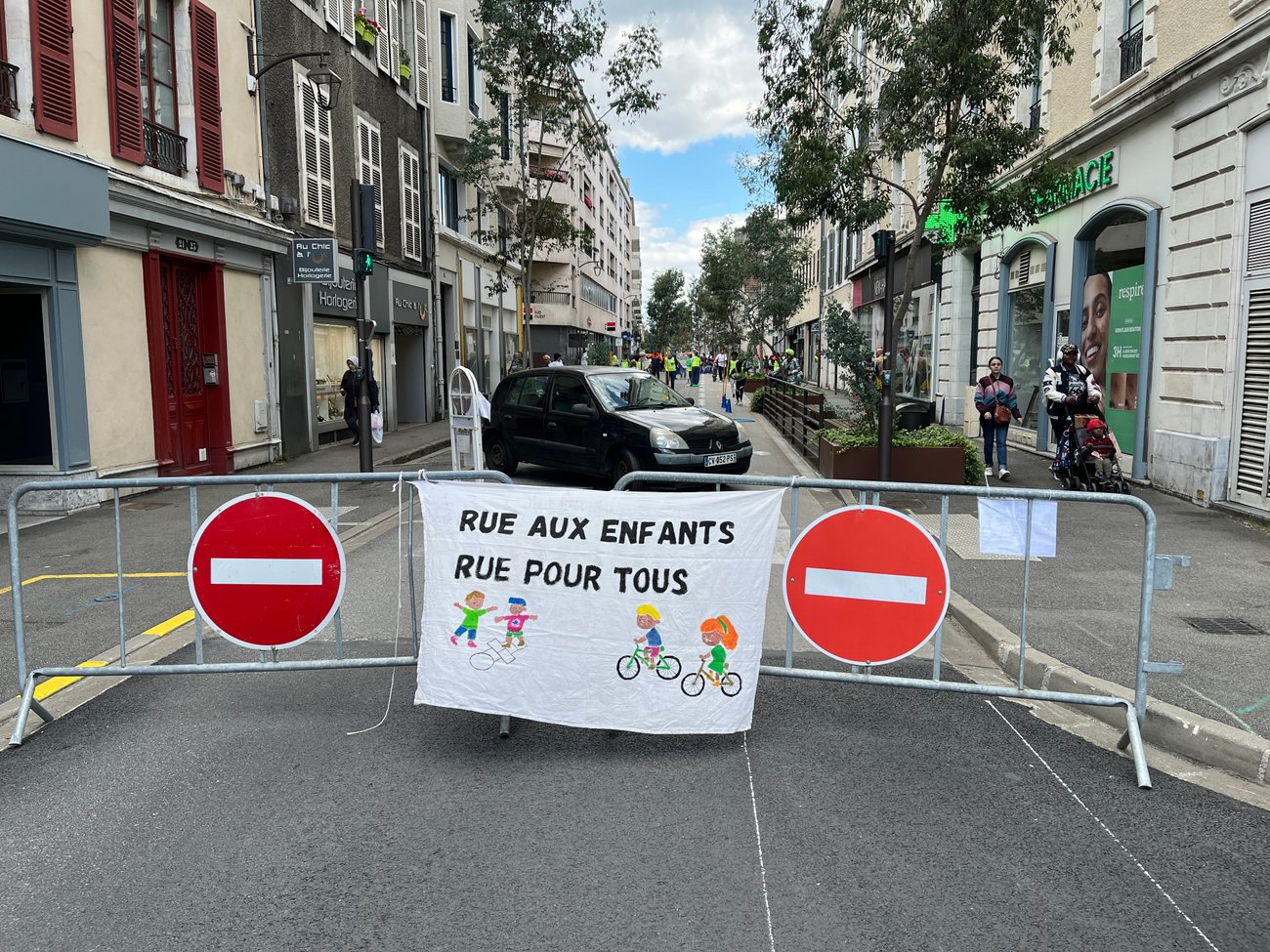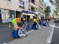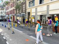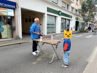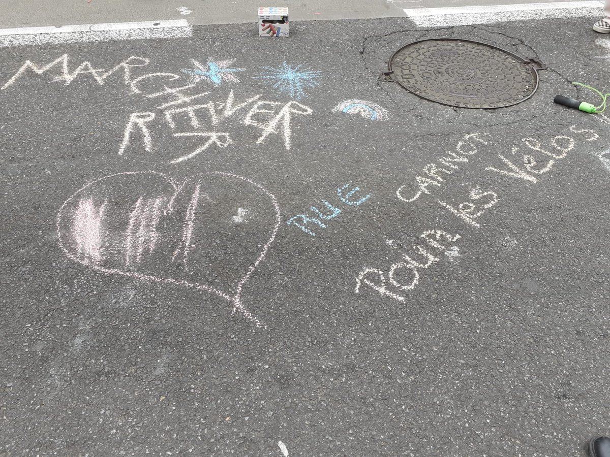 Entre alors en scène le périscolaire de l’école henri IV : animateurs, fauteuils roulants, paniers, plot et autre matériel à l’appui, la rue prend des airs de centre aéré où viennent slalomer doucement les nombreux vélos qui passent par là.