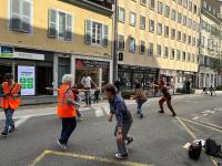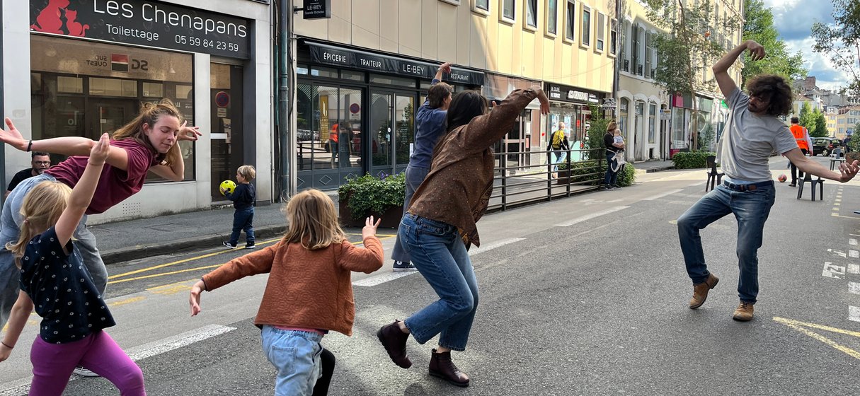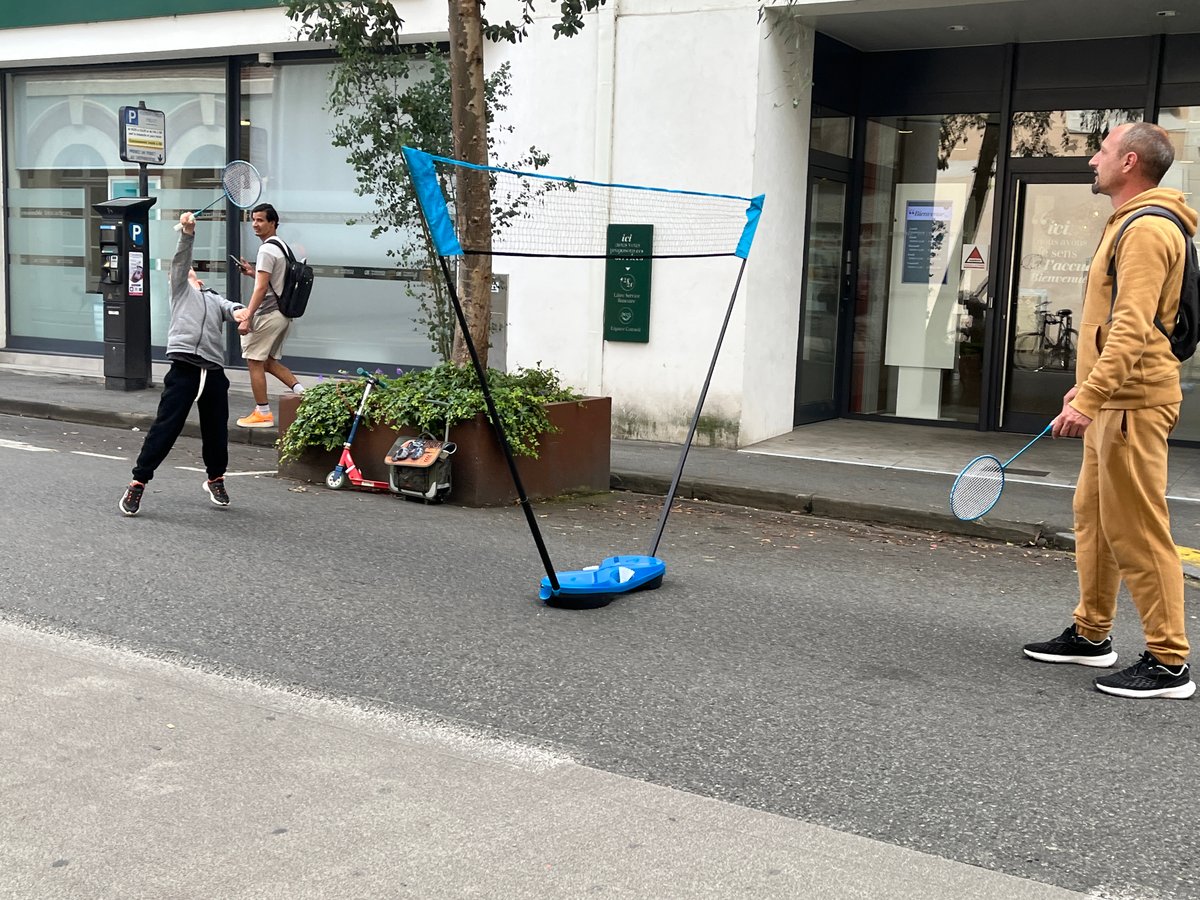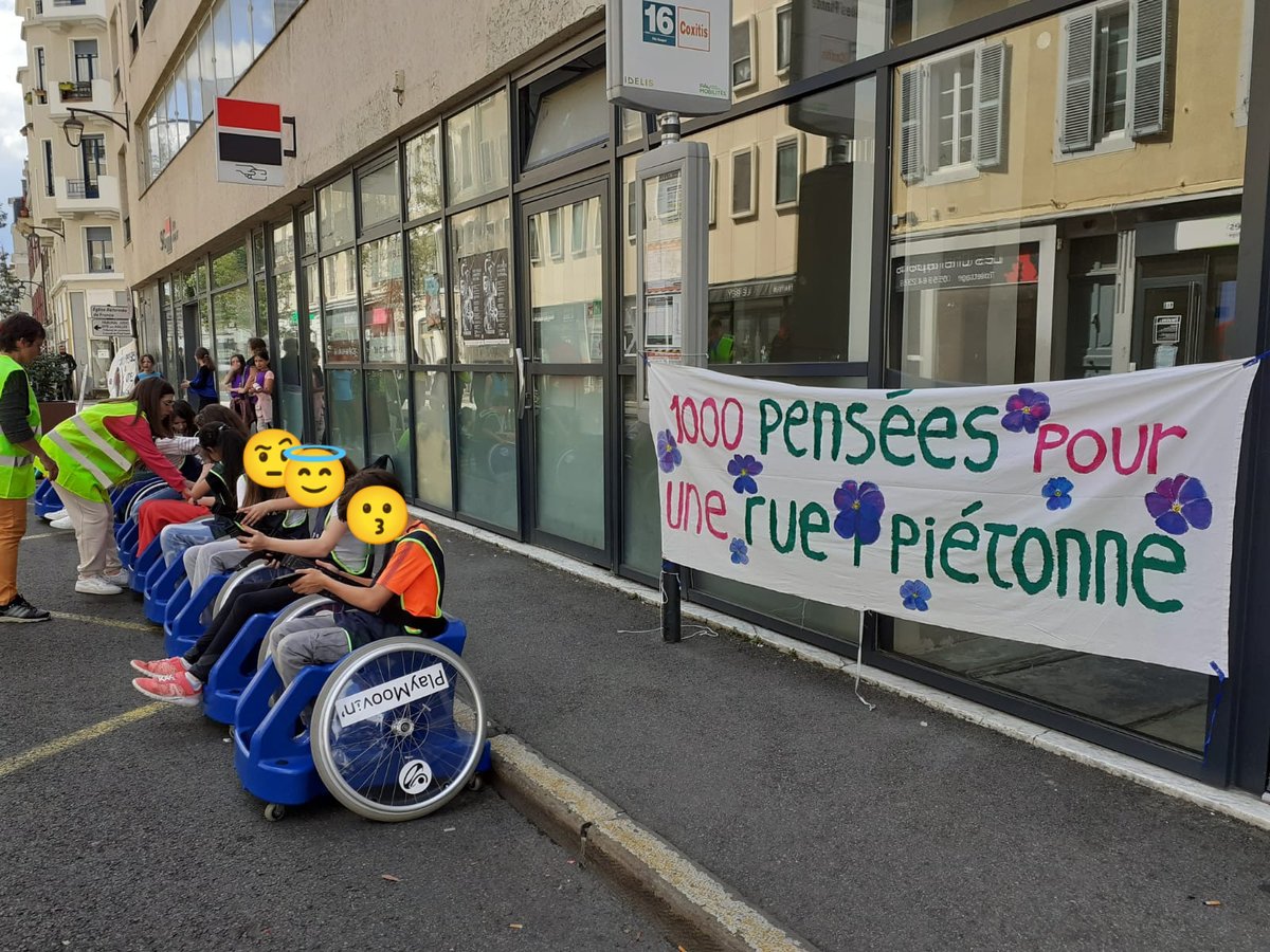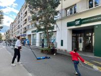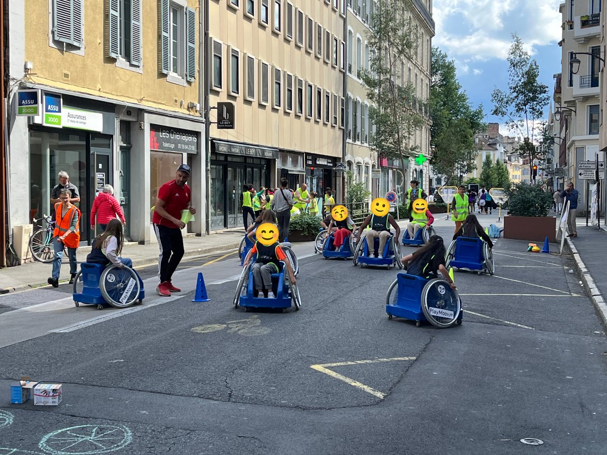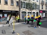 Entre alors en scène le périscolaire de l’école henri IV : animateurs, fauteuils roulants, paniers, plot et autre matériel à l’appui, la rue prend des airs de centre aéré où viennent slalomer doucement les nombreux vélos qui passent par là.