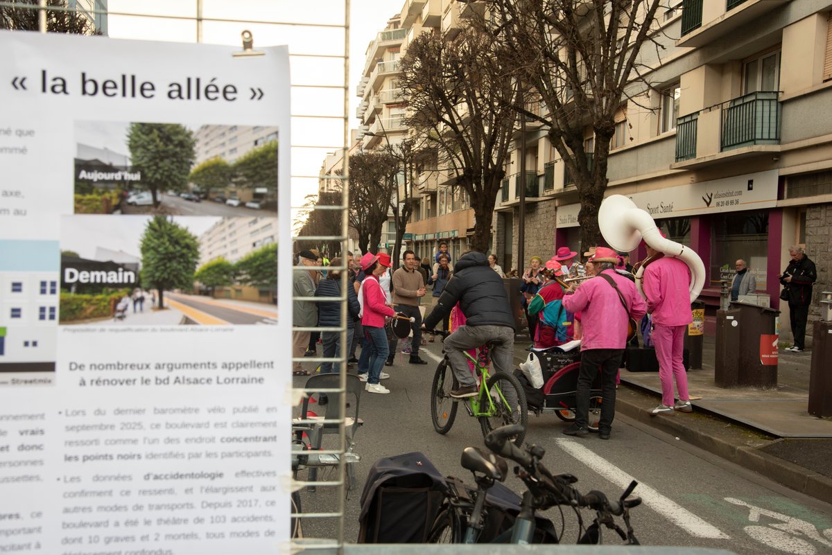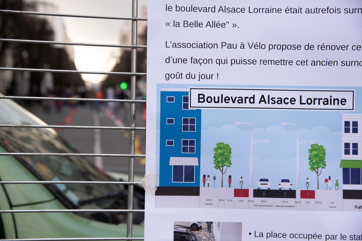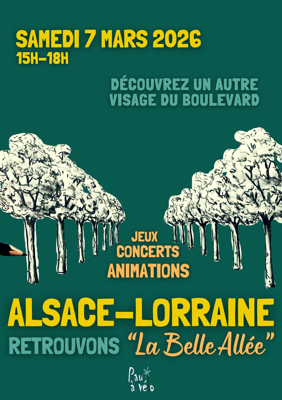 Samedi 7 mars, Pau à vélo a organisé un évènement festif pour proposer une rénovation du boulevard Alsace-Lorraine à Pau, au profit des déplacements à pied et à vélo, et du cadre de vie. Un habitant palois de longue date nous a témoigné que ce boulevard était autrefois surnommé « la Belle Allée" », et nous souhaitons qu’il puisse retrouver ce surnom !