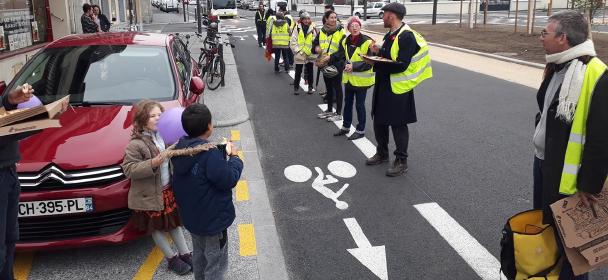 Un grand MERCI à la vingtaine de participants à l’opération « Protège ta bande » de ce vendredi soir. De 19h00 à 20h30, nous avons empêché les véhicules de stationner sur la nouvelle bande cyclable du carrefour Alsace-Lorraine/Carnot.